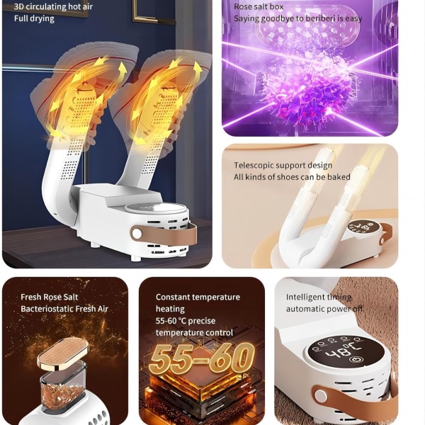 Distribuisce uniformemente il calore per asciugare le scarpe senza surriscaldare o deformare i materiali.