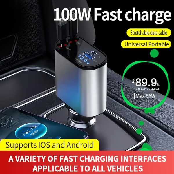 Le dimensioni compatte del caricatore garantiscono che si adatti perfettamente a qualsiasi veicolo, offrendo un facile accesso senza ingombrare lo spazio.