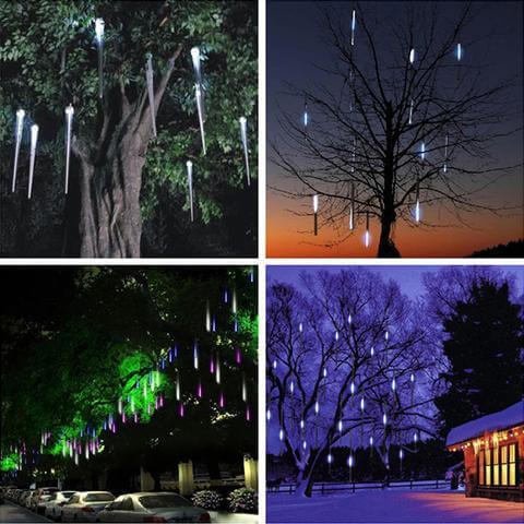 Pioggia di meteoriti Effetto che crea un’atmosfera romantica: Luci a led con effetto pioggia di meteoriti. La luce di ogni lampadina si accende e si spegne in sequenza e rapidamente simulando una pioggia di meteoriti o la neve che cade nel cielo notturno. Per un’atmosfera suggestiva.