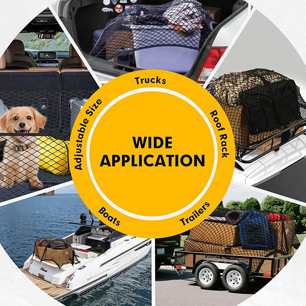 Ideale per la spesa quotidiana, viaggi in famiglia, accessori per animali domestici, attrezzi, attrezzatura da campeggio, attrezzatura sportiva, giochi da spiaggia o anche per organizzare oggetti sciolti a casa. Una rete: usi infiniti. Adatta per auto, SUV, furgoni, rimorchi, portapacchi e persino barche.